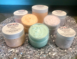 Ingredients: Avocado Butter, Mango Butter, Cocoa butter, Sweet Almond Oil, Arrowroot Powder, Fragrance Oil, Mica Powder